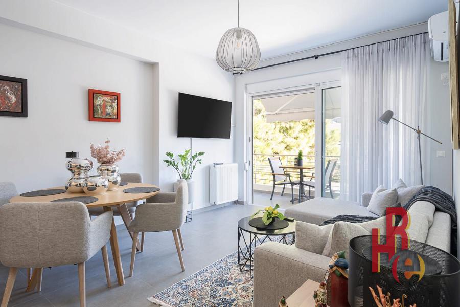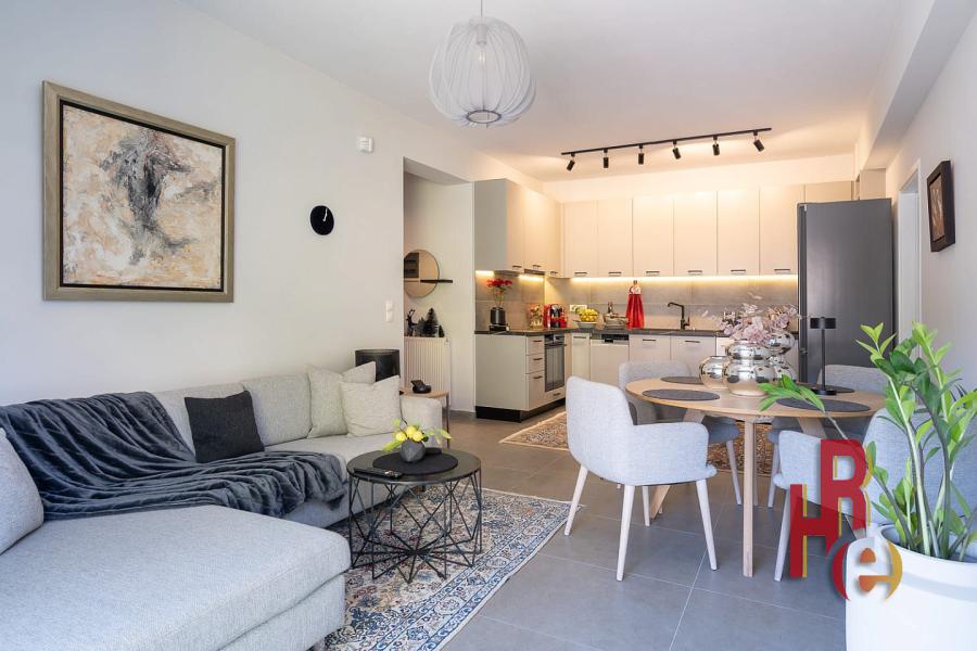A wonderful 65 sq.m. apartment in Alimos, located on the 1st floor, just a few steps from Vouliagmenis Avenue and the Alimos metro station (280m away). The apartment is of modern construction (built in 2010) and features a bright living room, two comfortable bedrooms ( the second one is a guest room with an office ) a contemporary fully equipped kitchen, and an elegant bathroom with modern details. It is fully furnished with stylish, high-quality furniture and is ready to welcome its new resident. Alarm system, internet connection and a parking seat make it a particularly attractive choice. It is an ideal choice for professionals, couples, or small families looking for a move-in ready home in a prime location. With immediate access to public transportation, shops, cafes, and the beach (3,5km away from Akti tou Iliou beach), it offers a unique combination of comfort, aesthetics, and practicality in the southern suburbs. The rent includes part of the bills.